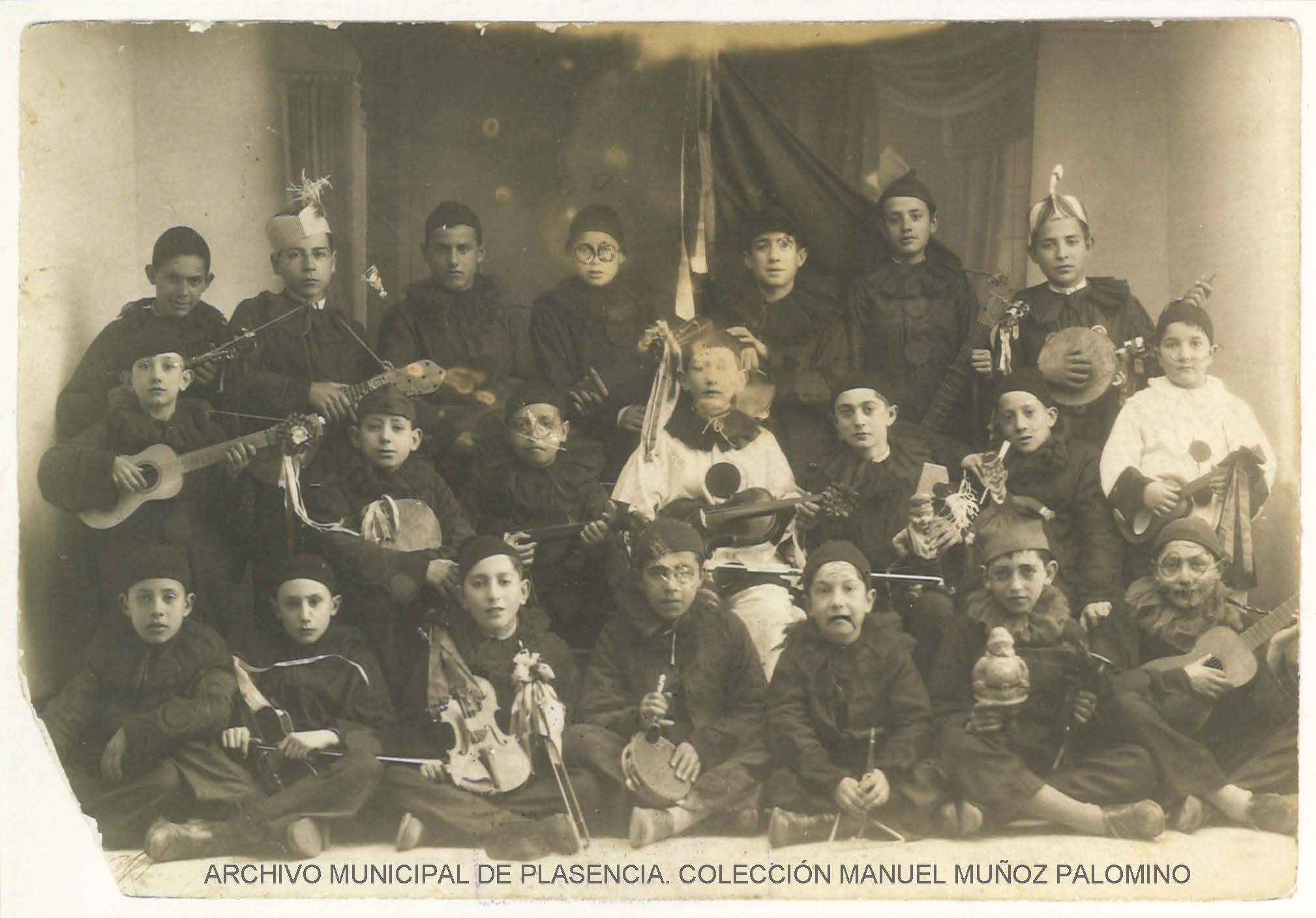 A principios del siglo XX convivían dos carnavales el popular con disfraces improvisados, máscaras toscas, ropa vieja, caras tiznadas y el “respetable”, el de las clases más acomodadas con antifaces, trajes alquilados y bailes privados. El cartel y la fotografía que mostramos pertenecería a este segundo grupo. La rondalla placentina se trataría de una rondalla organizada con instrumentos afinados y repertorio aprendido. No buscaban el escándalo, ni sus canciones tendrían un tono tan satírico y tampoco pretendían esconderse detrás de una máscara.